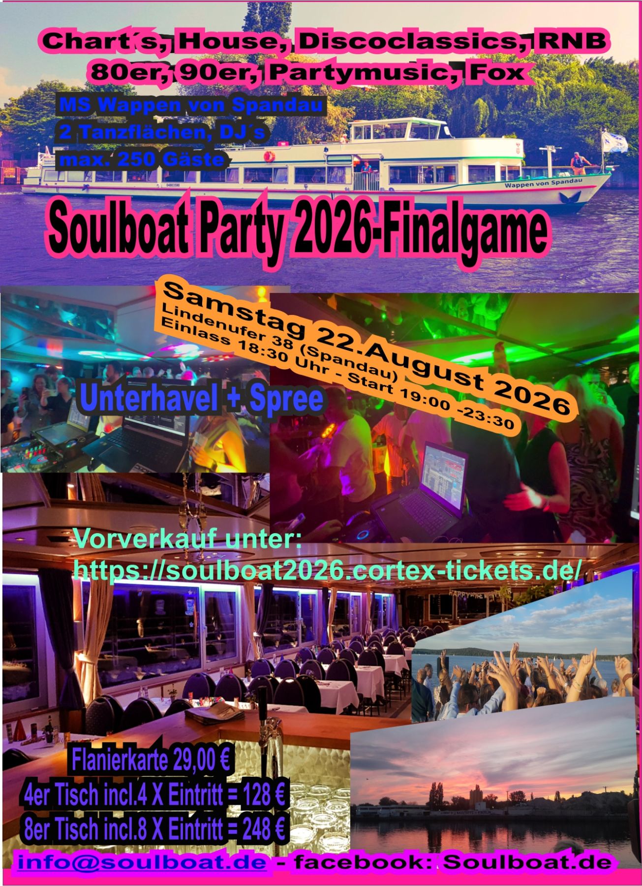 Die berühmten Soulboat Partys auf der MS Wappen von Spandau mit 2 Diskotheken, DJ Chris, DJ Lutz, DJ Peewee